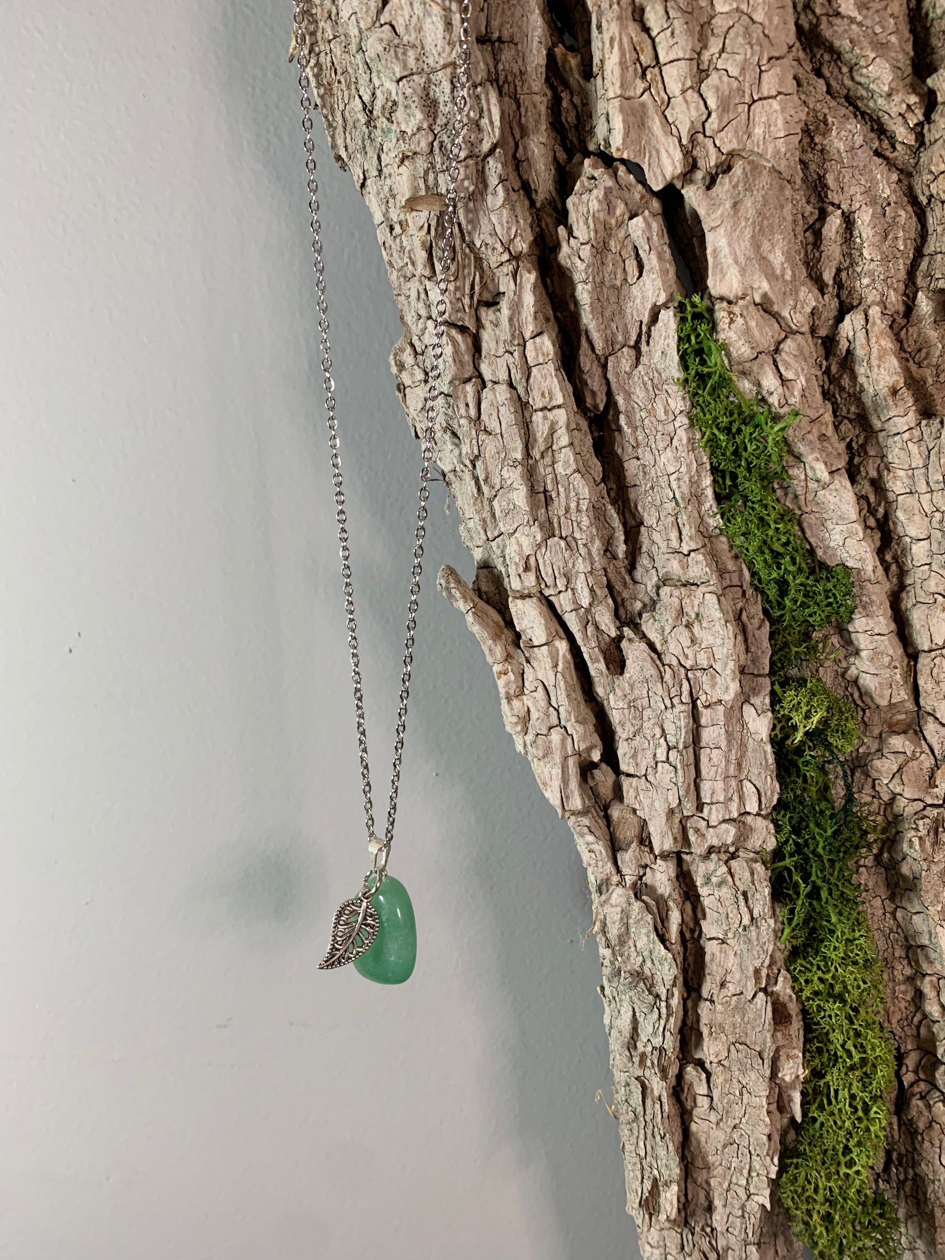 Green Aventurine Necklace with Leaf Charm 18”